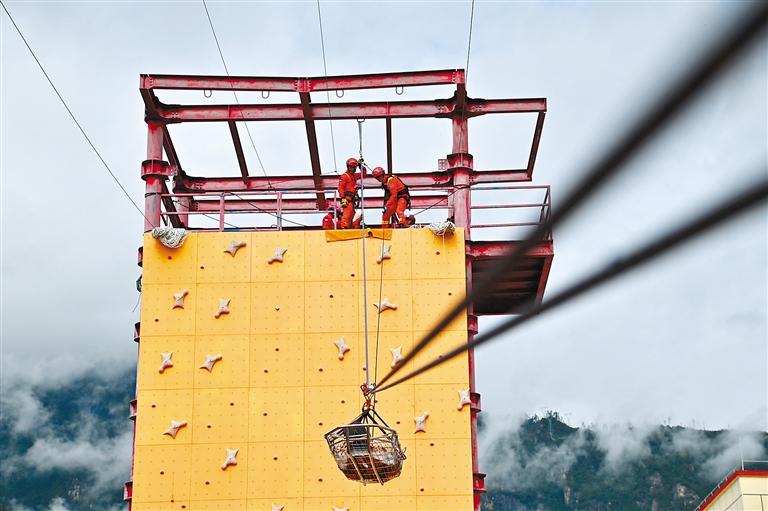 開展斜向救援技術(shù)訓(xùn)練。本報通訊員 西繞拉翁 記者 謝筱純 王珊 攝