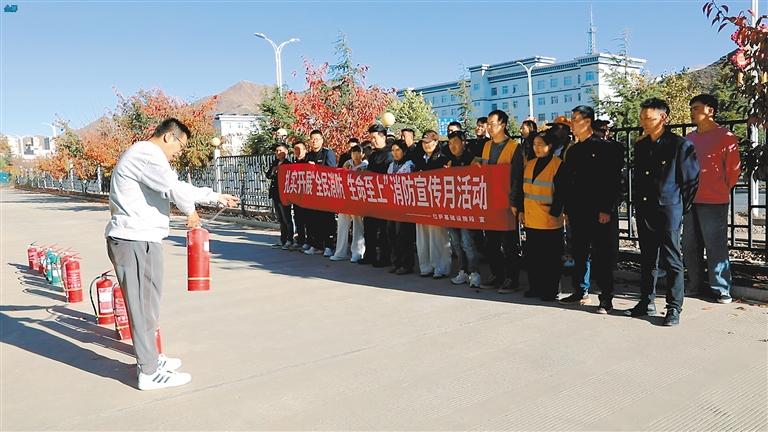 圖為工作人員講解消防器材使用技巧。 記者 旦增蘭澤 本報通訊員 拉巴次仁 攝