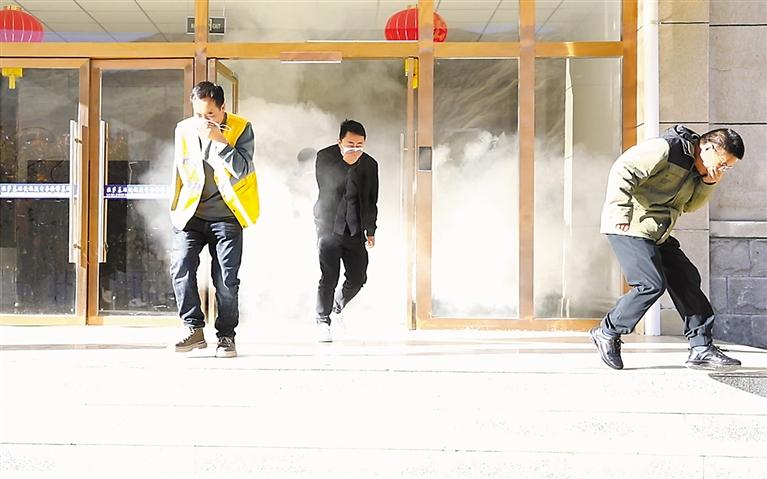 圖為干部職工進行應急消防演練。記者 旦增蘭澤 通訊員 拉巴次仁 攝