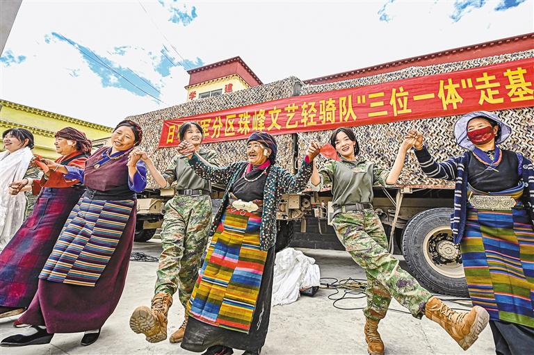珠峰文藝輕騎隊隊員精心準備了13個節(jié)目,并反復彩排,不斷打磨,旨在表達對戍邊官兵無私奉獻的崇高敬意,為駐地百姓帶去歡聲笑語,凝聚軍心、鼓舞士氣,匯聚起強軍興軍的磅礴力量。