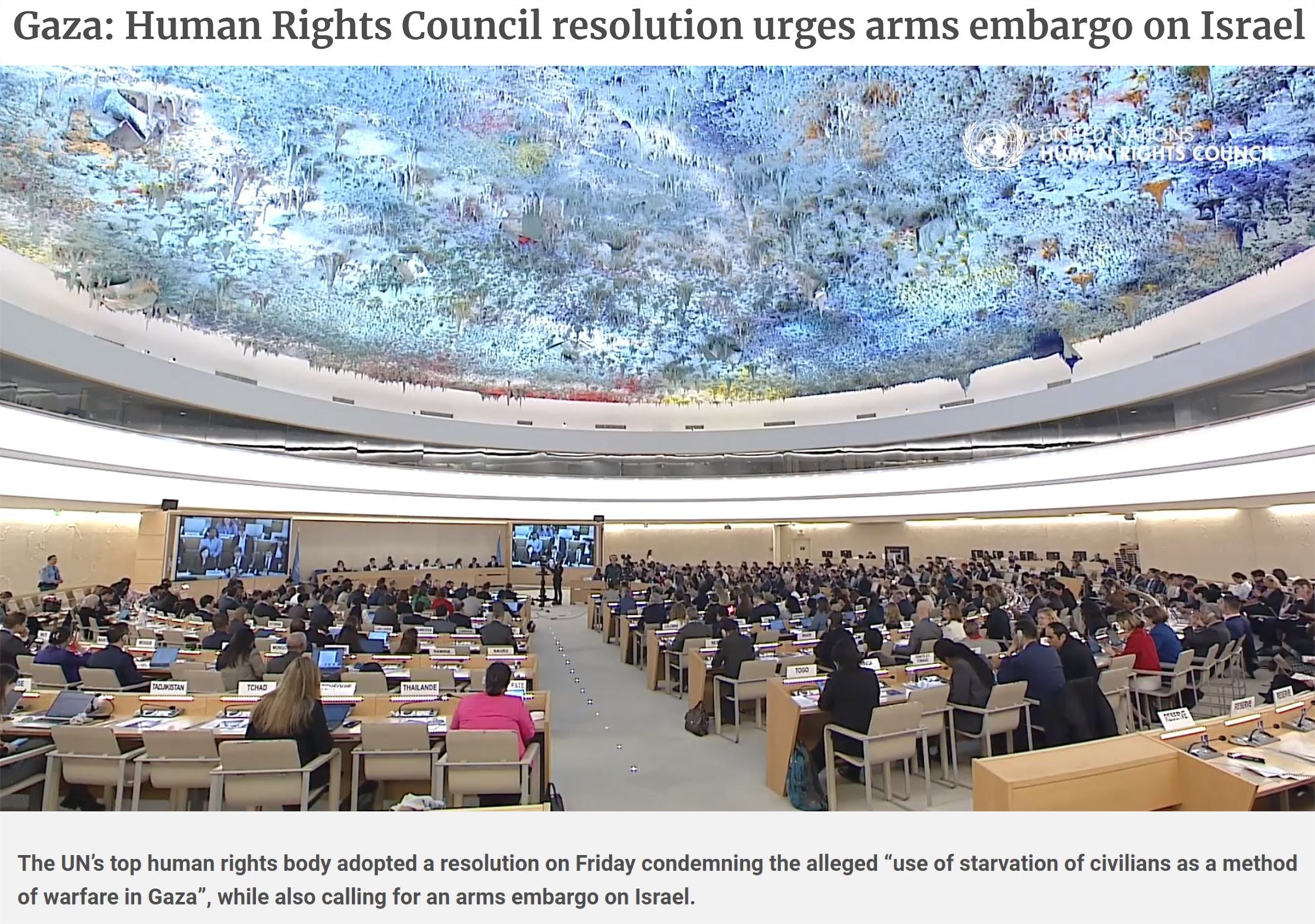 同一天,在日內(nèi)瓦閉幕的聯(lián)合國(guó)人權(quán)理事會(huì)第55屆會(huì)議通過(guò)一項(xiàng)決議,對(duì)以色列嚴(yán)重侵犯人權(quán)和嚴(yán)重違反國(guó)際人道主義法行為的相關(guān)報(bào)告表示關(guān)切。