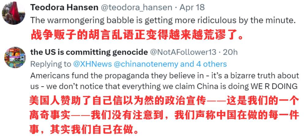 脫口秀播發(fā)后,英國議會議員喬治·加洛韋、倫敦廣播公司主持人丹尼絲·黑德利、倫敦都市大學(xué)副教授康斯坦丁諾斯·皮塔基、美國反戰(zhàn)組織“粉色代碼”等機構(gòu)和個人賬號紛紛轉(zhuǎn)贊評。網(wǎng)友們在評論區(qū)呼吁:這樣有趣又有料的節(jié)目,多多益善!