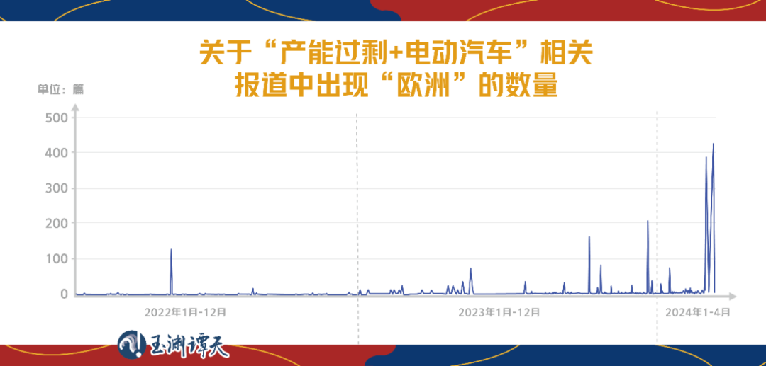 為了拆解美方的敘事套路,我們又定向?qū)λ^中國“產(chǎn)能過剩論”的報(bào)道中有關(guān)“新能源汽車”報(bào)道的趨勢變化進(jìn)行了分析。