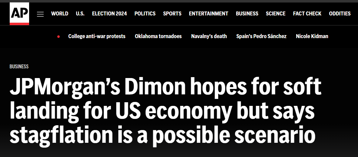 近日,摩根大通公司首席執(zhí)行官杰米·戴蒙在接受美聯(lián)社采訪時(shí)稱,他對美國經(jīng)濟(jì)仍保持“審慎”,并表示通脹可能會在更長時(shí)間內(nèi)變得更棘手,“滯脹也可能是(美國經(jīng)濟(jì)面臨的)一種情況”。