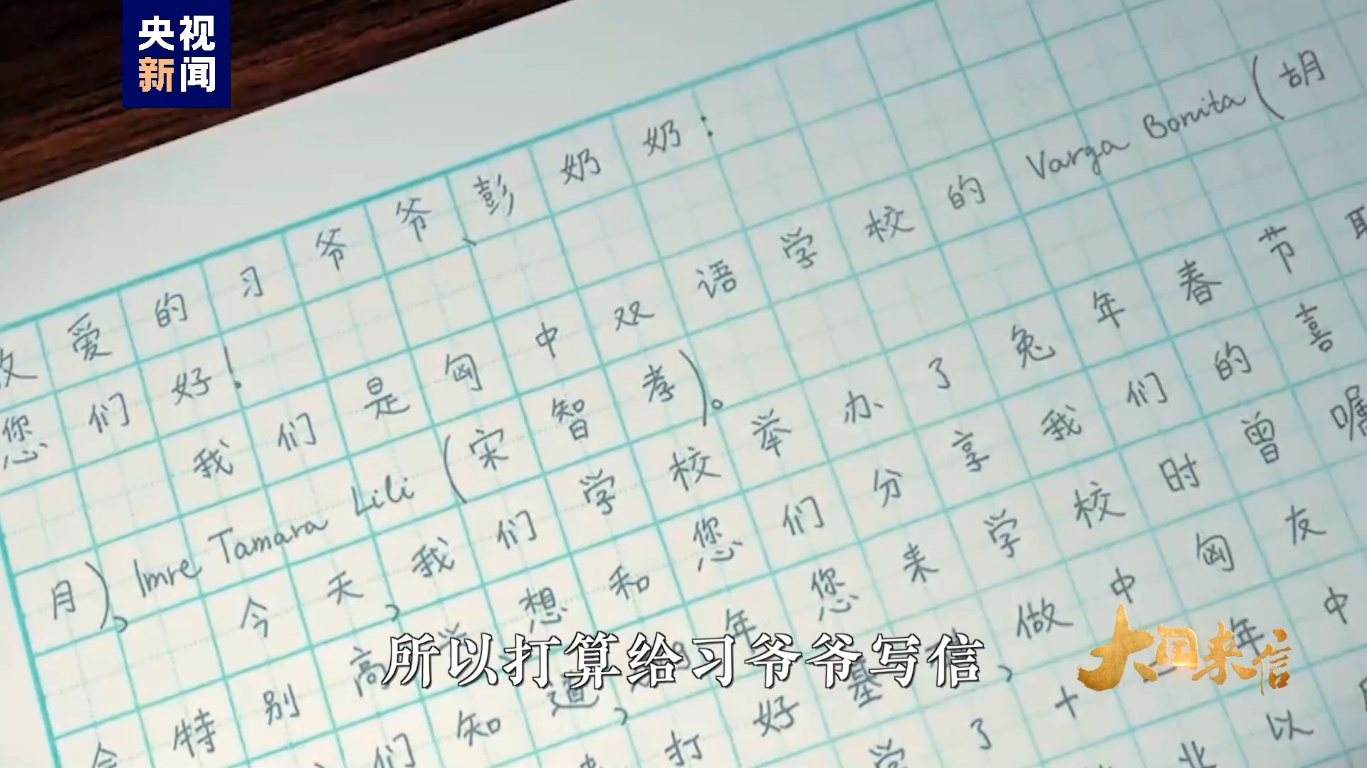首都師范大學(xué)匈牙利留學(xué)生 胡靈月:2023年1月18日,我和宋智孝一起第二次獲得了中國(guó)大使獎(jiǎng)學(xué)金,非常高興和激動(dòng),特別想分享我們的喜悅。另外我們也想送上新春祝福,所以打算給習(xí)爺爺寫信。