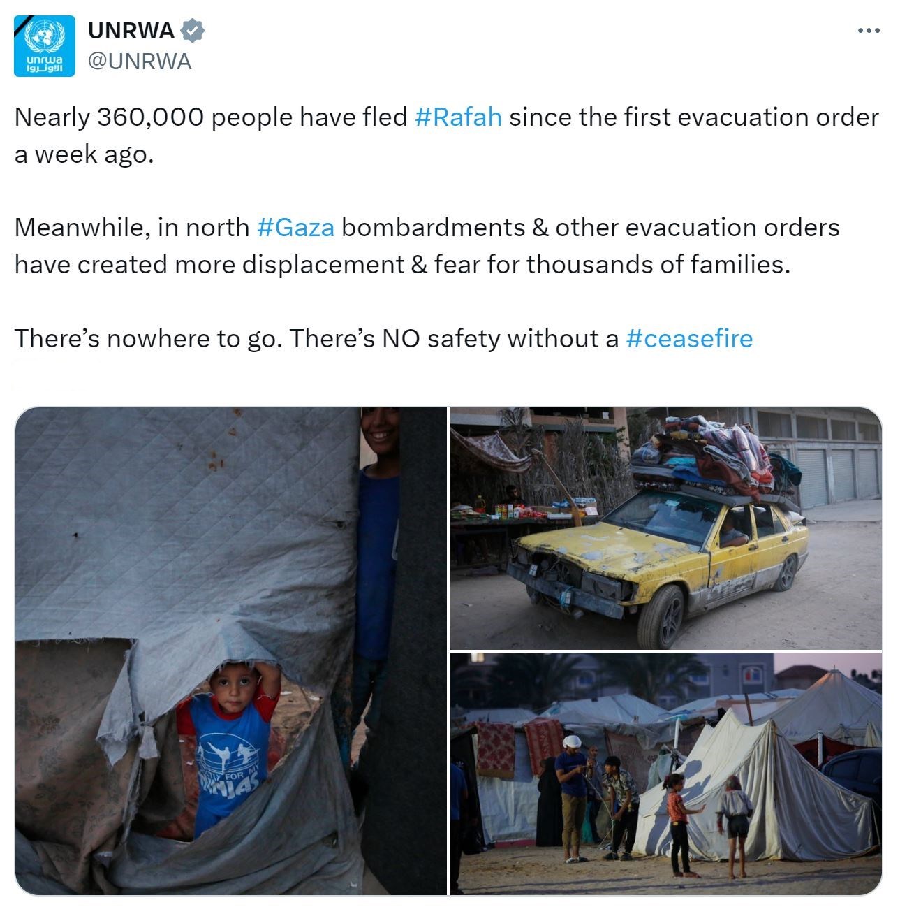 △聯(lián)合國(guó)近東救濟(jì)工程處13日通過社交媒體發(fā)表聲明稱,迫于以色列政府持續(xù)發(fā)布的強(qiáng)制疏散令,過去一周約有36萬巴勒斯坦平民撤出拉法,其中大多數(shù)人已經(jīng)在加沙境內(nèi)經(jīng)歷多次顛沛流離。