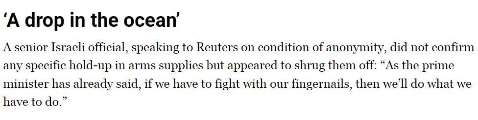 以色列和美國(guó)的官員以及分析人士都認(rèn)為,拜登只叫停部分對(duì)以軍火輸送根本算不上什么政策轉(zhuǎn)變,短期內(nèi)不會(huì)影響以色列的實(shí)際作戰(zhàn)能力。