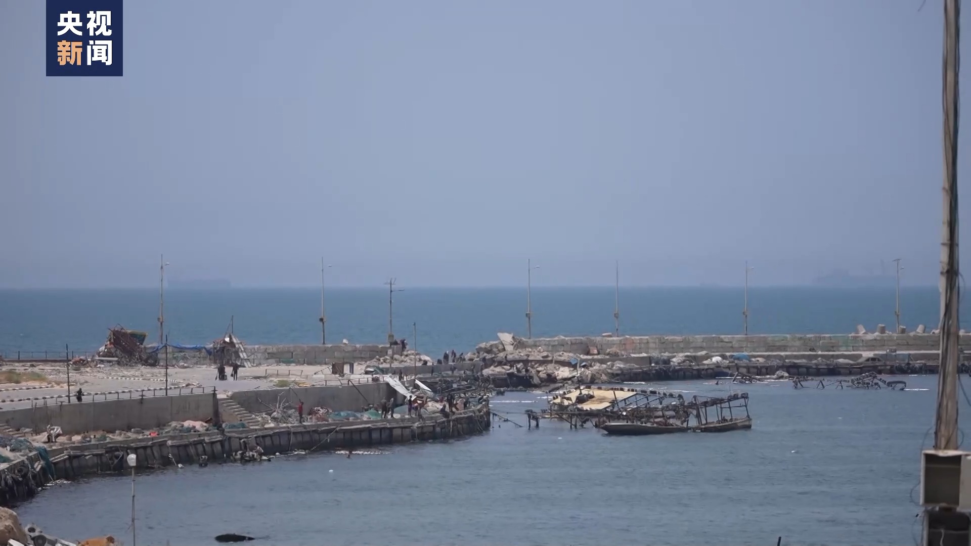 總臺報道員 奧薩馬:我們現(xiàn)在是在加沙城的港口附近。這是距離前往美軍浮動碼頭船只最近的地點,這個碼頭是由美國修建的,其宣稱是為了向被圍困的加沙地帶提供人道主義援助。