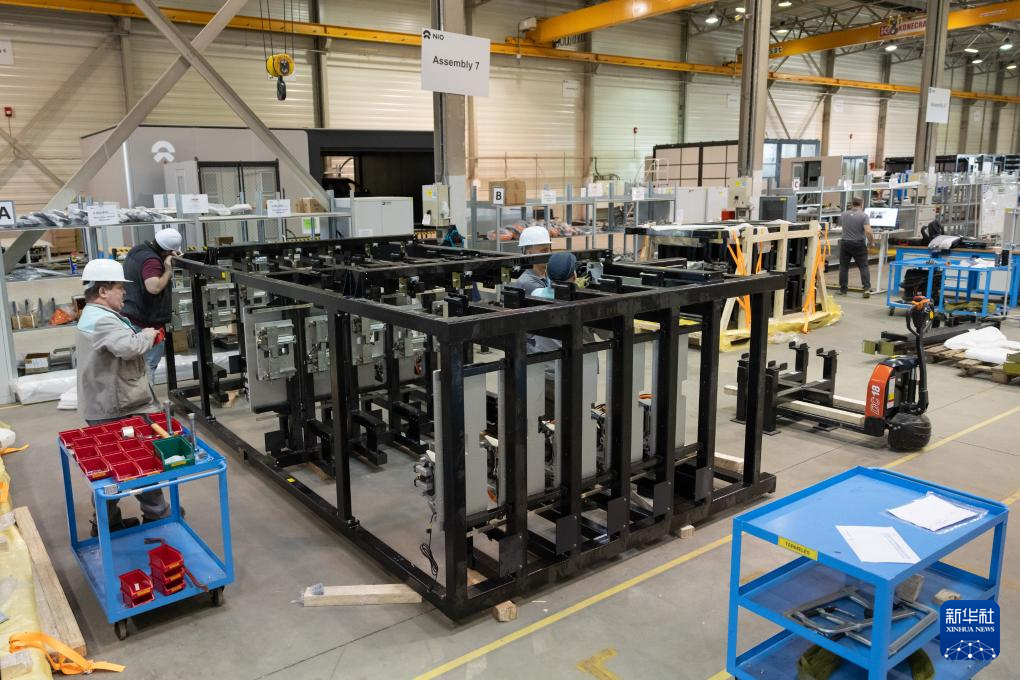 2024年1月26日,在匈牙利比奧托爾巴吉,員工在蔚來(lái)能源歐洲工廠(chǎng)工作。新華社發(fā)(弗爾季·奧蒂洛 攝)