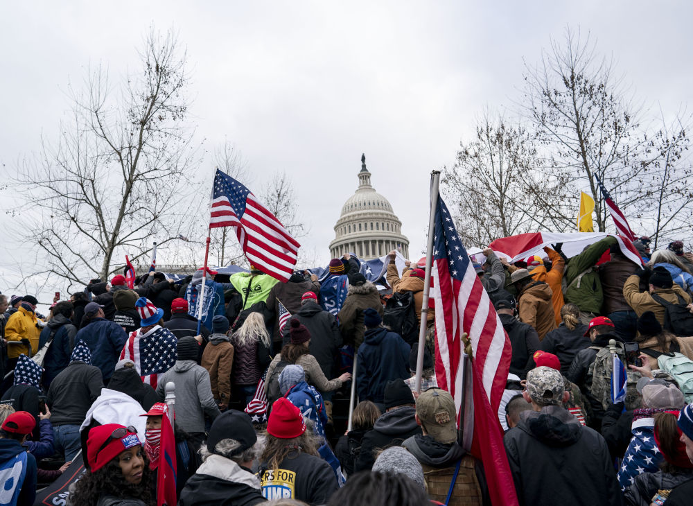 2021年1月6日,在美國首都華盛頓,時(shí)任總統(tǒng)特朗普的支持者在國會(huì)外舉行示威游行,部分示威者沖進(jìn)國會(huì)大廈,與警方發(fā)生沖突,造成一人死亡,當(dāng)時(shí)正在舉行的認(rèn)證大選結(jié)果的國會(huì)參眾兩院聯(lián)席會(huì)議也被迫中斷。新華社記者劉杰攝