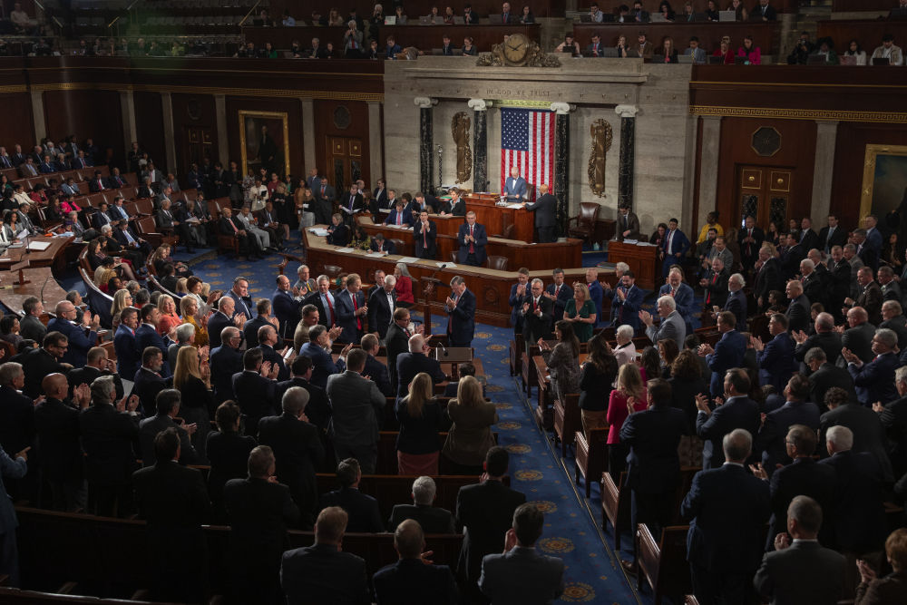 2023年10月25日,美國國會(huì)眾議院25日進(jìn)行議長選舉第四輪投票,來自路易斯安那州的共和黨保守派聯(lián)邦眾議員邁克·約翰遜當(dāng)選議長。新華社發(fā)(亞倫攝)