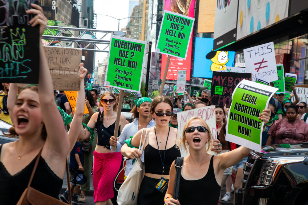 2022年7月4日,墮胎權(quán)支持者在美國紐約舉行示威游行。美國聯(lián)邦最高法院6月24日推翻近半個(gè)世紀(jì)前在聯(lián)邦層面確立墮胎權(quán)的判例“羅訴韋德案”,取消對(duì)女性墮胎權(quán)的憲法保護(hù),引發(fā)廣泛爭議。新華社發(fā)(郭克攝)