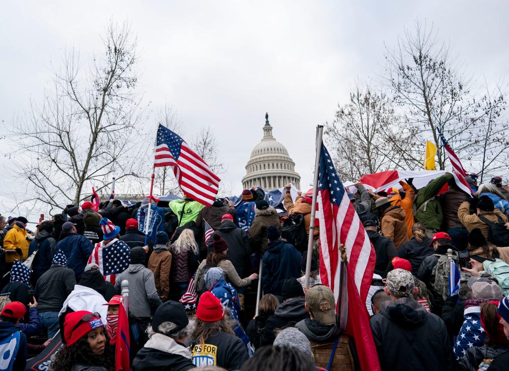 2021年1月6日,在美國首都華盛頓,時任總統(tǒng)特朗普的支持者在國會外舉行示威游行,部分示威者沖進國會大廈,與警方發(fā)生沖突,造成一人死亡,當(dāng)時正在舉行的認證大選結(jié)果的國會參眾兩院聯(lián)席會議也被迫中斷。新華社記者劉杰攝