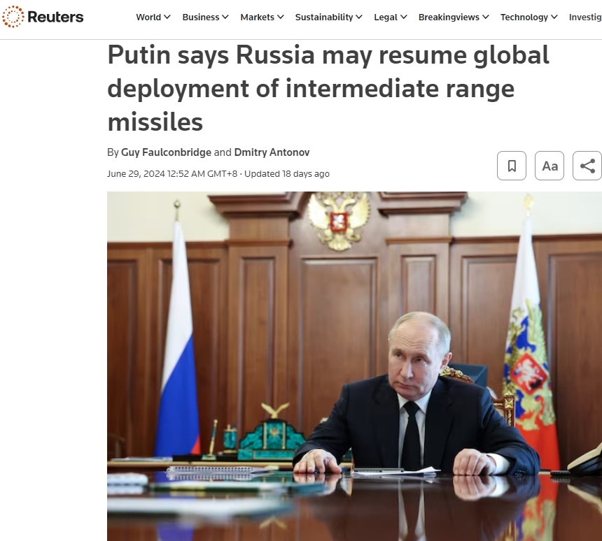 俄方不止一次發(fā)布消息說,美國的陸基中導(dǎo)系統(tǒng)已經(jīng)出現(xiàn)在歐洲的軍事訓(xùn)練中。俄總統(tǒng)普京上月底曾警告,作為對美國敵對行動的回應(yīng),莫斯科可能會恢復(fù)陸基中導(dǎo)的生產(chǎn)和全球部署。