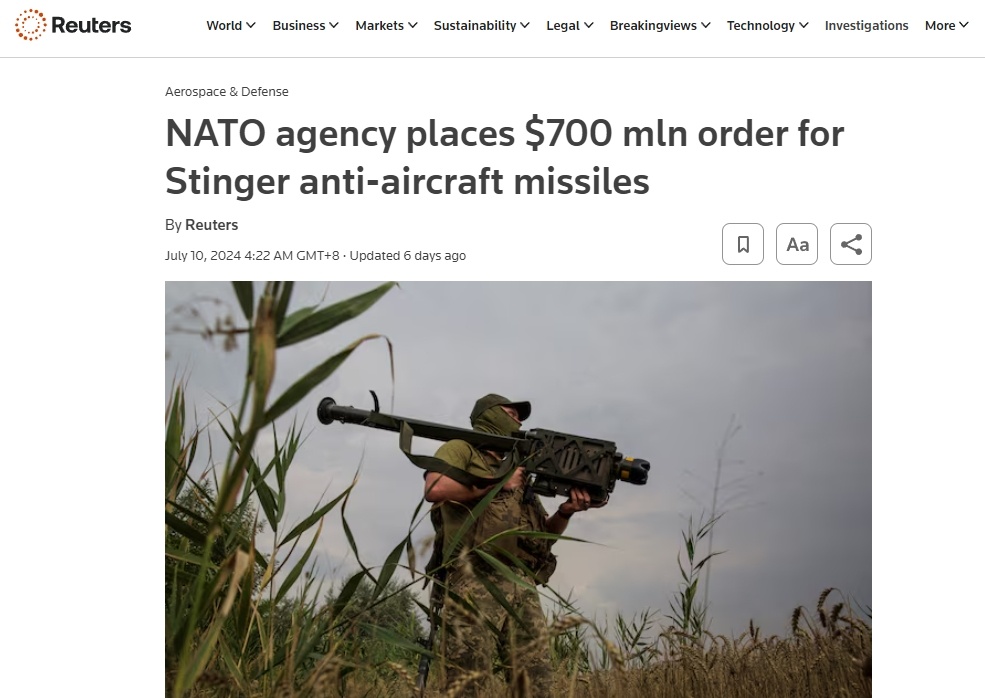 本月早些時候,北約宣布已經(jīng)以多個成員國的名義訂購了價(jià)值近7億美元的“毒刺”肩扛式單兵防空導(dǎo)彈。這款導(dǎo)彈也是雷神制造。