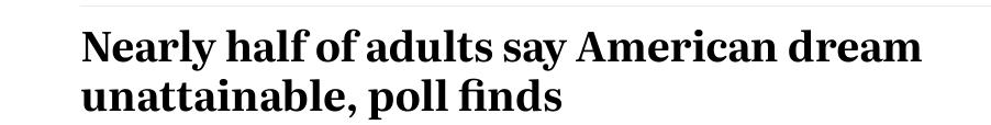 位于哥倫比亞特區(qū)的公共政策中心阿奇布里奇研究所(Archbridge Institute)在2023年7月的一份調(diào)查報(bào)告中稱,接受調(diào)查的24%的成年人表示,美國(guó)夢(mèng)對(duì)他們來(lái)說(shuō)“遙不可及”,這一比例高于2022年的18%。