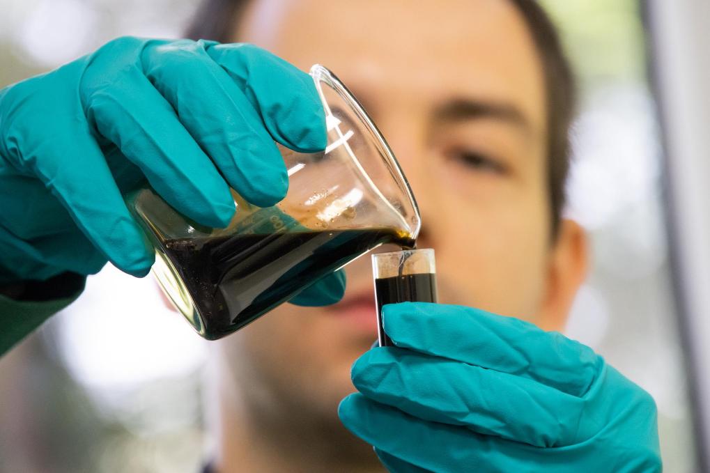 2022年5月24日,在匈牙利薩茲豪隆包陶多瑙河煉油廠,一名工人對(duì)通過阿德里亞輸油管道運(yùn)達(dá)的原油樣品進(jìn)行質(zhì)量分析。新華社發(fā)(弗爾季·奧蒂洛攝)