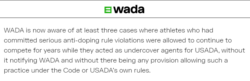 世界反興奮劑機(jī)構(gòu)前幾天披露,他們發(fā)現(xiàn)美國常年包庇至少3名嚴(yán)重違規(guī)“嗑藥”的運(yùn)動(dòng)員,理由居然是把這些人發(fā)展成了“線人”。這些“線人”整個(gè)職業(yè)生涯都在正常參賽和拿獎(jiǎng),自己就是“奉命作弊”,還指望他們抓作弊嗎?