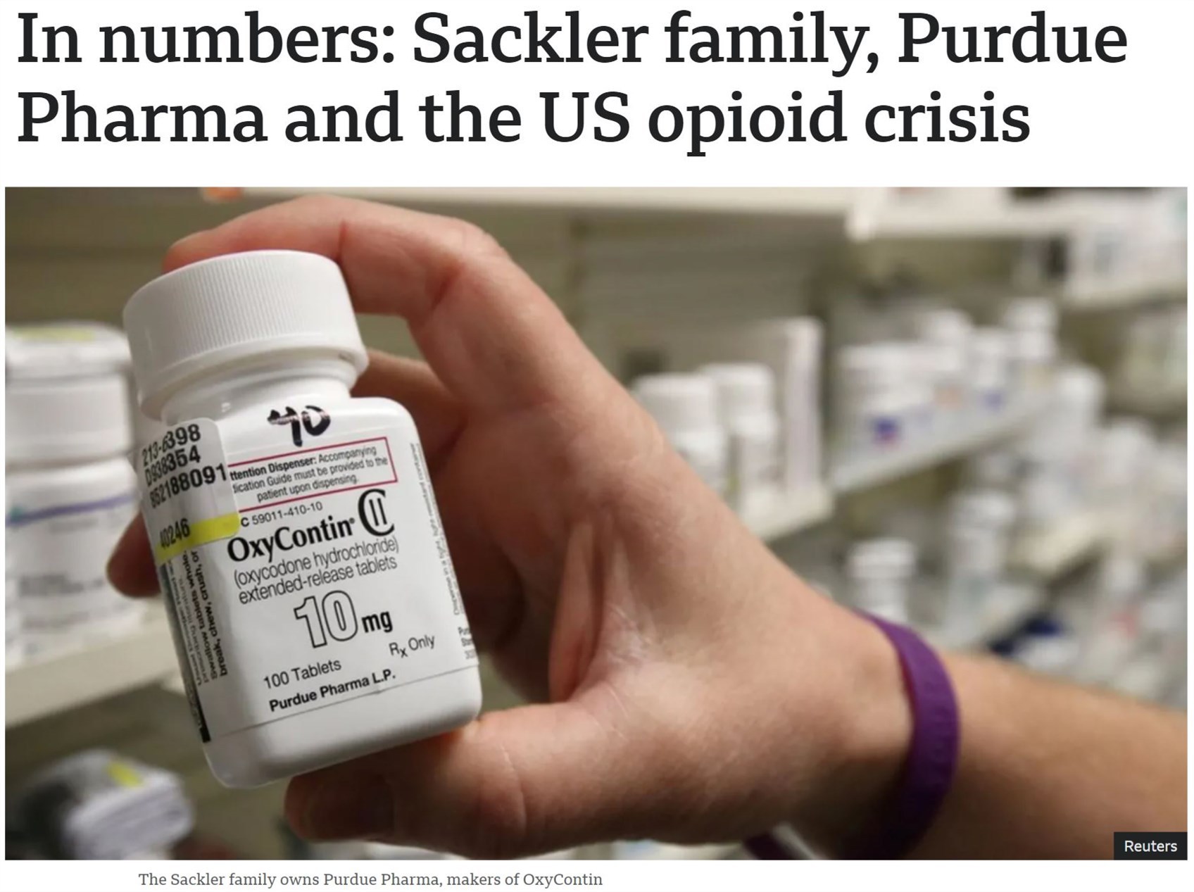 2019年,薩克勒家族還被開出天價罰金,迫使普渡制藥公司總部申請了破產保護。