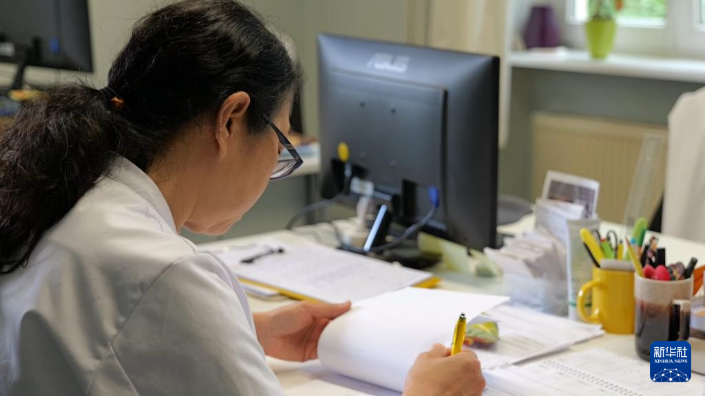7月11日,在德國(guó)巴伐利亞州巴德魁茨汀,北京中醫(yī)藥大學(xué)魁茨汀醫(yī)院的中醫(yī)醫(yī)生在記錄病患信息。 新華社記者 賈金明 攝