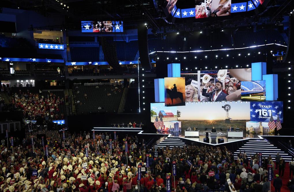這是7月15日在美國(guó)威斯康辛州密爾沃基拍攝的共和黨全國(guó)代表大會(huì)現(xiàn)場(chǎng)。新華社記者吳曉凌攝