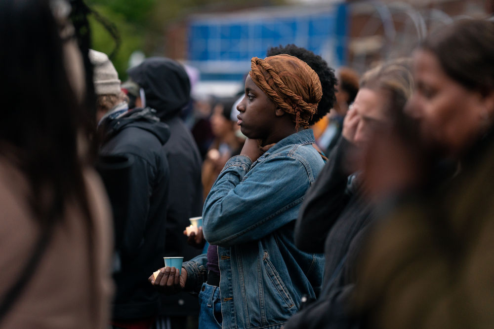2022年5月25日,在美國明尼蘇達(dá)州明尼阿波利斯市,人們參加哀悼活動(dòng),紀(jì)念弗洛伊德遇害兩周年。2020年5月25日,“無法呼吸”的非洲裔男子喬治·弗洛伊德死于白人警察膝下,成為美國人權(quán)史上的恥辱一頁。新華社發(fā)(本·布魯爾攝)