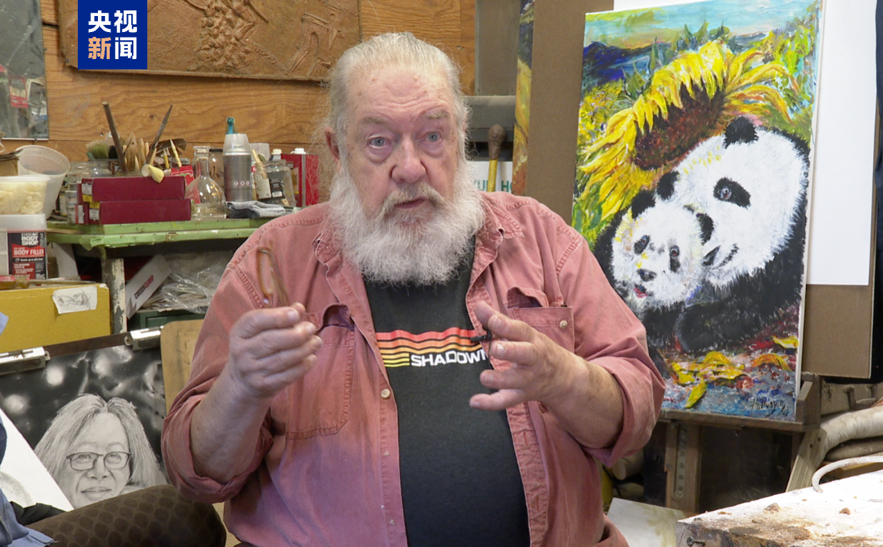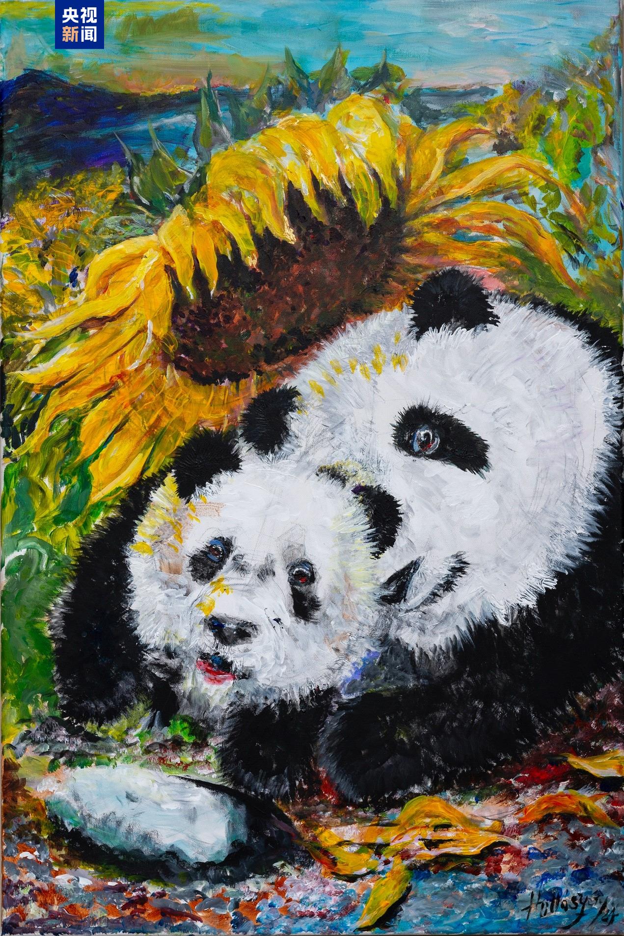向日葵既是霍洛西的創(chuàng)作主題之一,也象征著加州的植被和自然景觀,霍洛西把加州向日葵和中國大熊貓結合在一起,比喻旅美大熊貓受到美國人民的喜愛和呵護,在圣迭戈的新家茁壯成長?;袈逦髡J為,人與人交流的關鍵是保持開放的心態(tài),在傾聽的過程中學習與對話。
