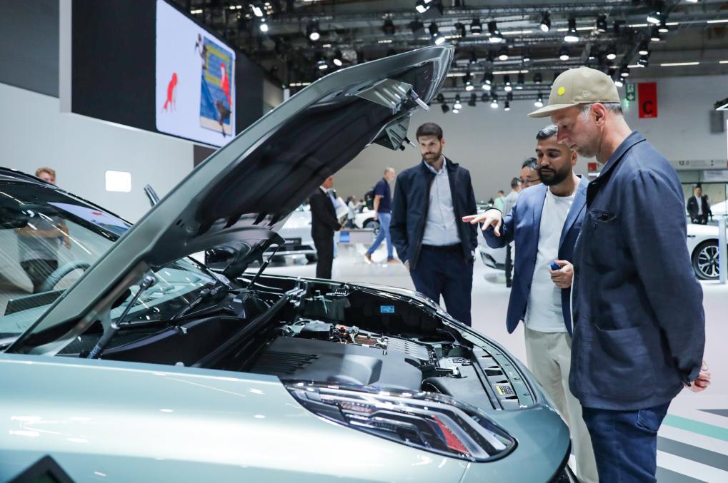 9月11日,人們在德國法蘭克福國際汽車零配件及售后服務(wù)展覽會上參觀吉利展臺。為期5天的法蘭克福國際汽車零配件及售后服務(wù)展覽會10日開幕。吉利、比亞迪等多家中國電動汽車品牌首次集體亮相,被德國媒體和業(yè)內(nèi)人士視為本次展會一大看點。新華社記者張帆攝