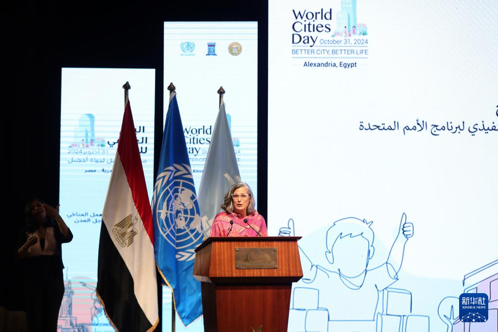 10月31日,在埃及亞歷山大,聯(lián)合國人居署執(zhí)行主任阿納克勞迪婭·羅斯巴赫在活動上致辭。新華社記者 王東震 攝
