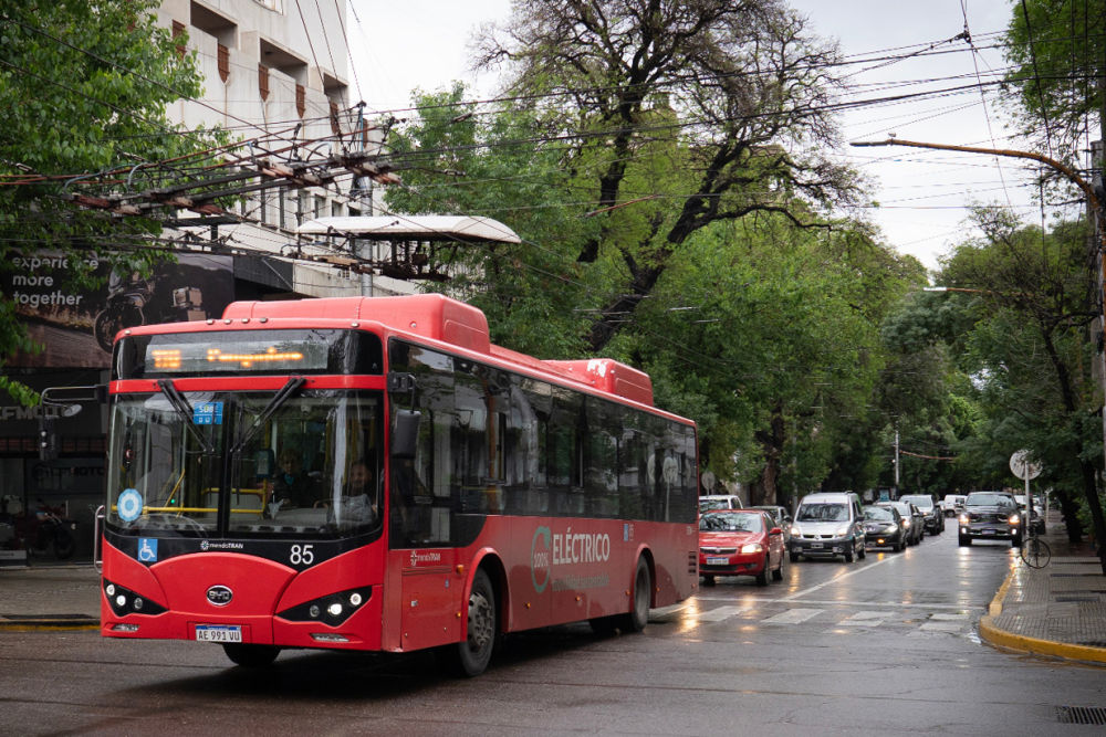 拜訪完酒莊,記者來到門多薩市區(qū)。這里,一些紅色公交車穿梭于林蔭道,車身上“百分之百電動”的標(biāo)語非常醒目。這是門多薩于2019年從比亞迪和中通客車購入的電動巴士。由此當(dāng)?shù)氐谝恢щ妱庸卉囮犝酵度脒\(yùn)營。
