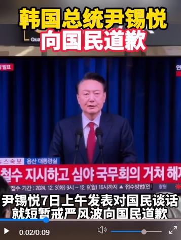 韓國(guó)總統(tǒng)尹錫悅7日上午發(fā)表對(duì)國(guó)民談話,就短暫戒嚴(yán)風(fēng)波向國(guó)民道歉。韓國(guó)執(zhí)政黨黨首韓東勛當(dāng)天對(duì)媒體表示,總統(tǒng)尹錫悅盡早下臺(tái)不可避免。(記者:陸睿;視頻:付一鳴)