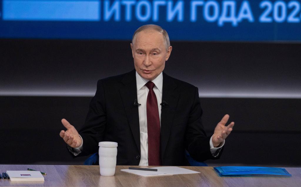 12月19日,在俄羅斯首都莫斯科,俄羅斯總統(tǒng)普京在“年度盤點(diǎn)”活動(dòng)上講話。新華社記者白雪騏攝