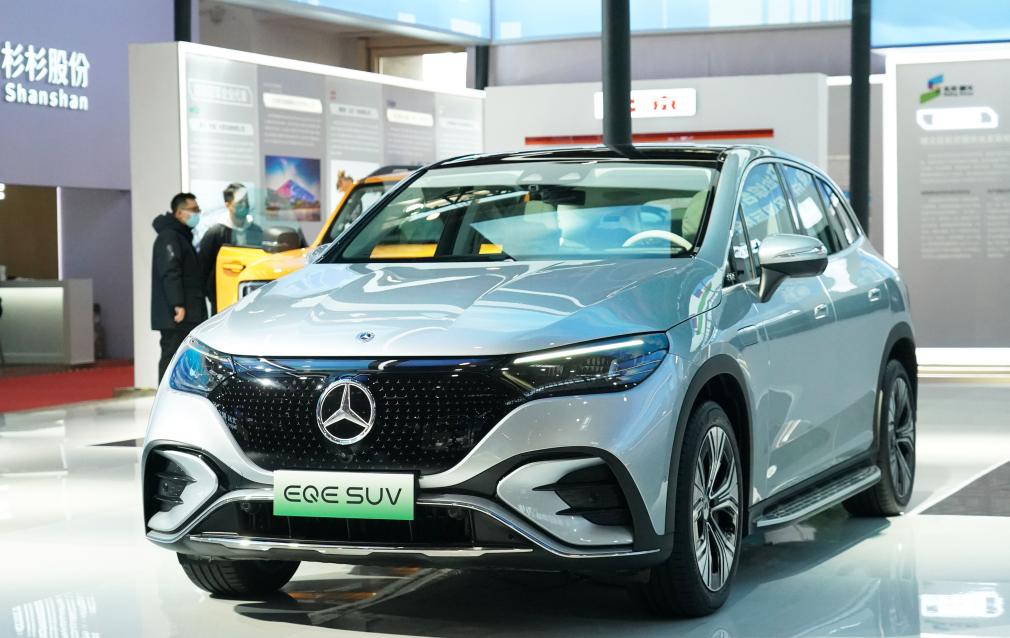 2023年11月30日在北京舉辦的首屆中國(guó)國(guó)際供應(yīng)鏈促進(jìn)博覽會(huì)智能汽車鏈展區(qū)拍攝的奔馳EQE SUV。新華社記者任超攝