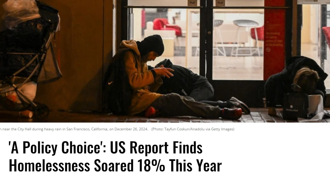 美國住房和城市發(fā)展部(HUD)本月27日發(fā)布報(bào)告稱,美國聯(lián)邦無家可歸者追蹤系統(tǒng)記錄到的無家可歸者數(shù)量已超過77萬,與去年同期相比驟增了18.1%,也是自2007年開始此項(xiàng)統(tǒng)計(jì)以來的最大增幅。對此,美國《共同夢想》網(wǎng)站(Common Dreams)報(bào)道指出,這完全是“政策選擇”,后果可以預(yù)見。
