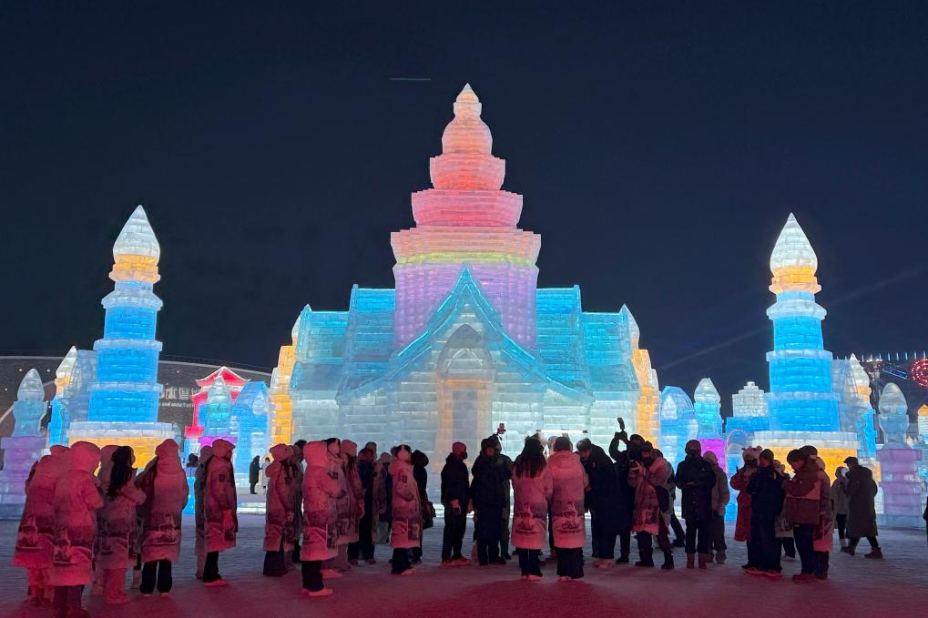 在浪漫的冰雪城市哈爾濱,新西蘭游客保利娜被晶瑩剔透的冰雕吸引。第一次來中國的她和朋友打卡冰雪大世界,“很早就知道‘爾濱熱’了,我的打開方式很正宗吧?”