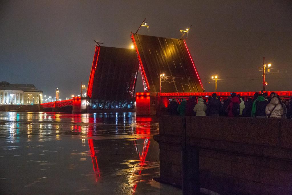 按照當?shù)貍鹘y(tǒng),涅瓦河上的多座橋梁只在每年4月至11月通航季定時開合,以便大型船只通航?!斑@是圣彼得堡首次為外國節(jié)日開橋,特別獻給我們的中國朋友?!笔ケ说帽な袑ν怅P(guān)系委員會主席格里戈里耶夫說。