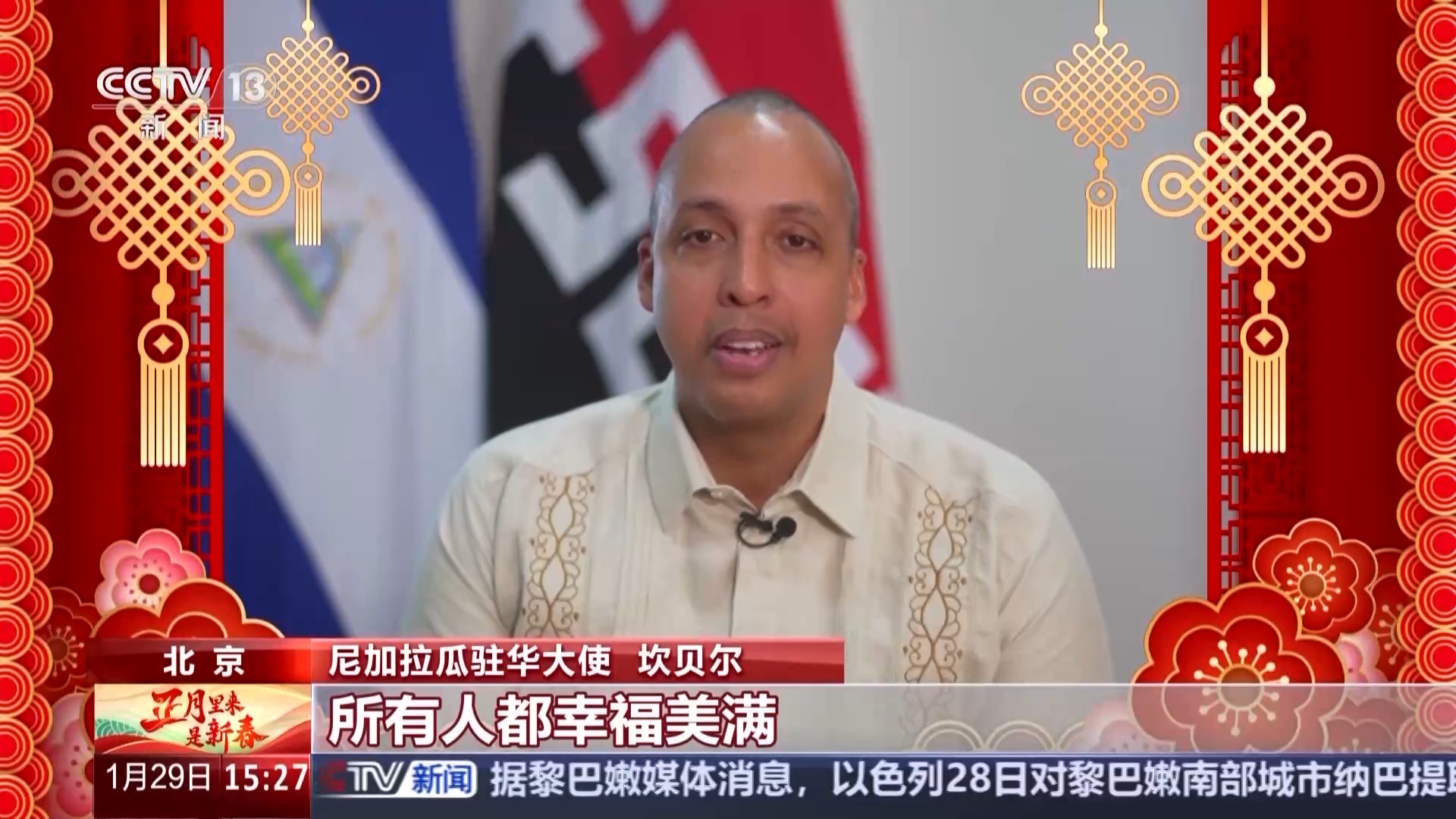 尼加拉瓜駐華大使 坎貝爾:在新的一年里,我們的計劃是繼續(xù)在已有成就的基礎(chǔ)上繼續(xù)發(fā)展,特別是我們將致力于促進兩國大學(xué)之間的更多合作、締結(jié)更多姐妹城市,推動更多的投資和貿(mào)易。當然,尼加拉瓜是共建“一帶一路”倡議、全球發(fā)展倡議和全球文明倡議的支持者。我們都致力于在國際舞臺上,建設(shè)一個更加多極化的世界。習(xí)近平主席對構(gòu)建人類命運共同體進行了非常清晰的闡述。尼加拉瓜完全支持這一理念,我們將為實現(xiàn)這一目標而不懈努力。