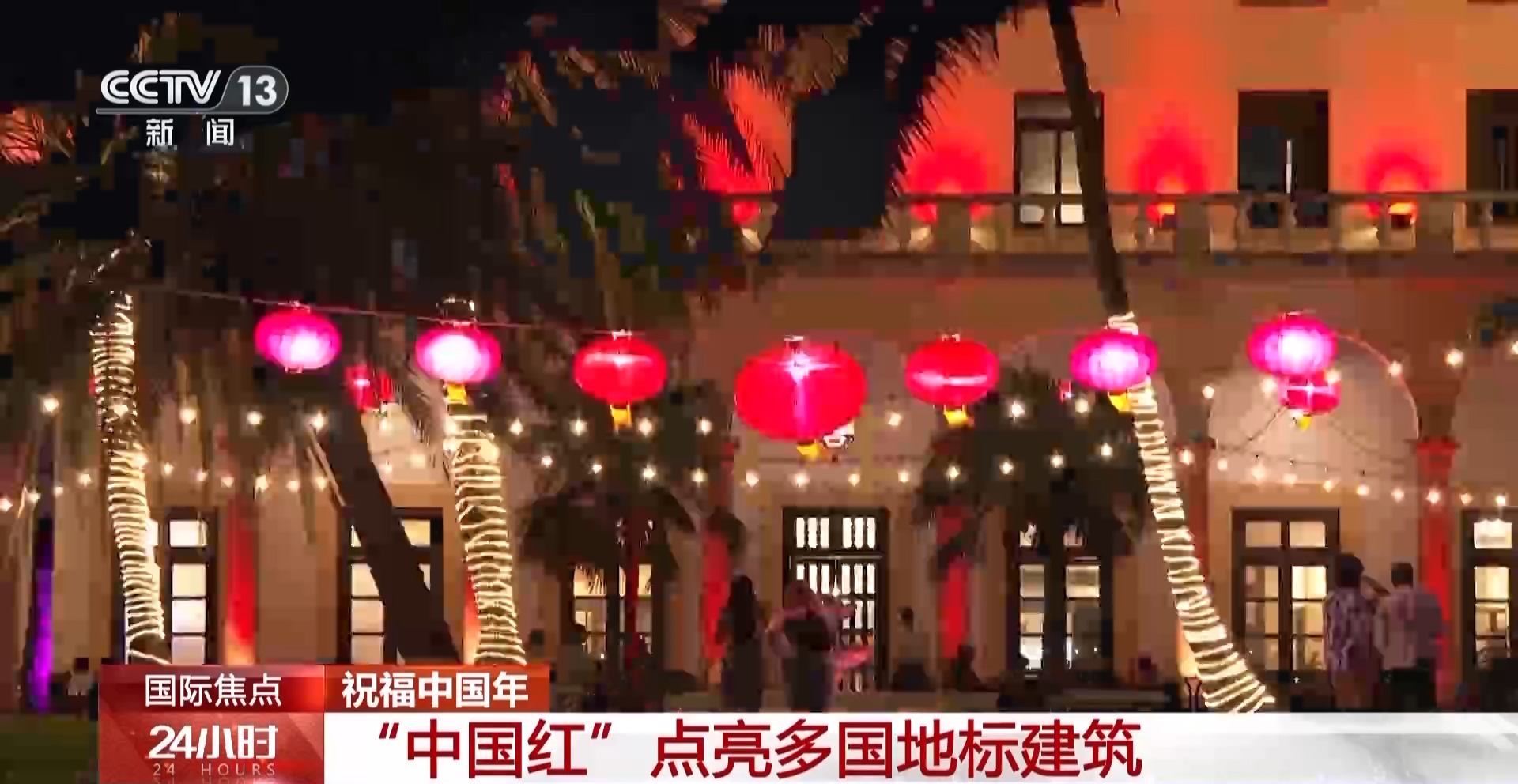 為慶祝中國蛇年春節(jié),1月28日,在美國、古巴、澳大利亞多地的地標性建筑都舉行了“中國紅”亮燈儀式,絢麗耀眼的“中國紅”點亮夜空,增添了歡樂喜慶的節(jié)日氣氛。