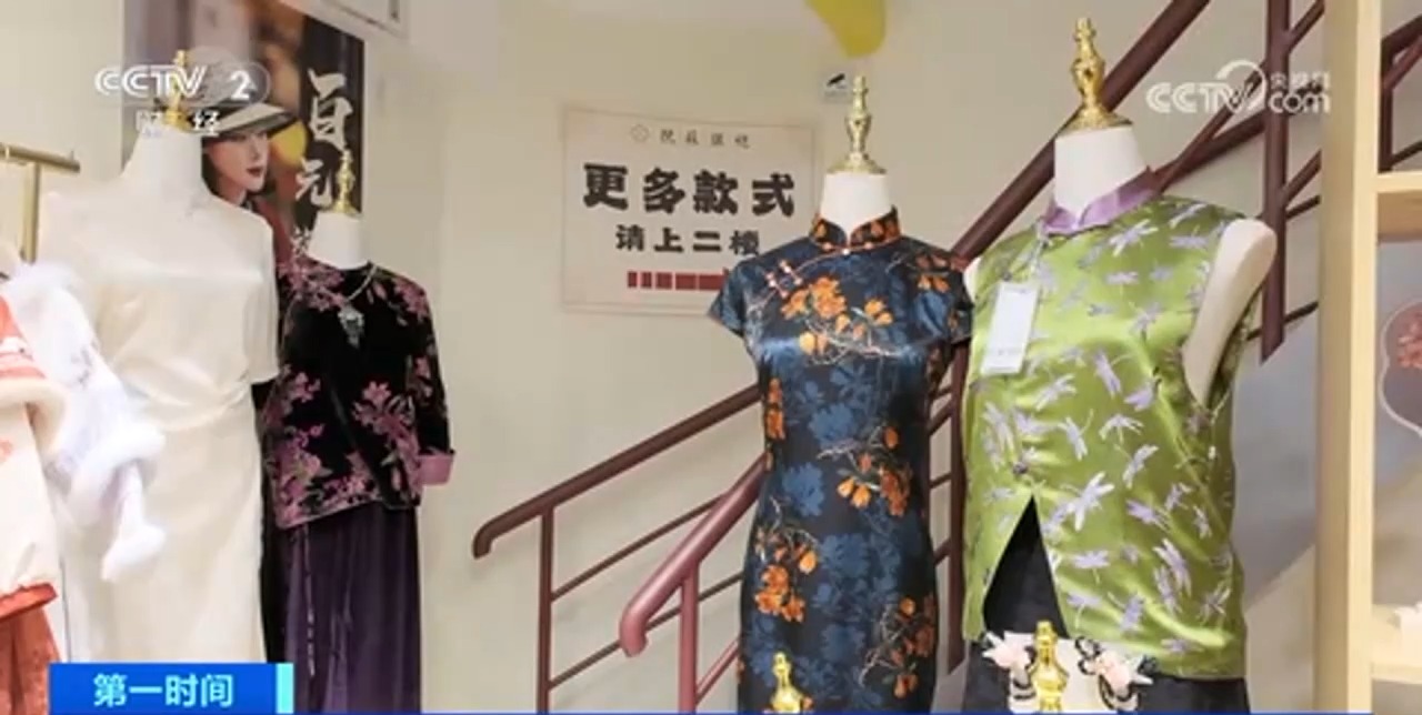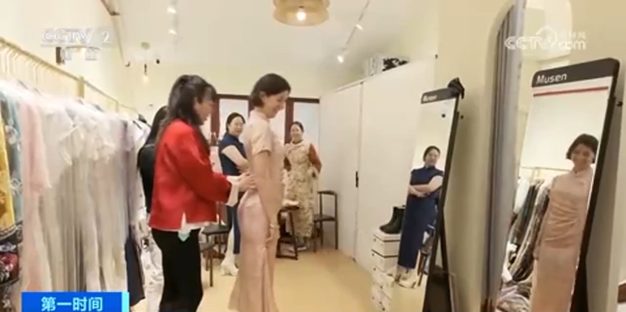 旗袍店店長(zhǎng)表示,最近幾個(gè)月由于外國(guó)游客增多,許多外國(guó)客人來(lái)體驗(yàn)穿中國(guó)旗袍,也帶動(dòng)了門(mén)店銷(xiāo)量增長(zhǎng)。