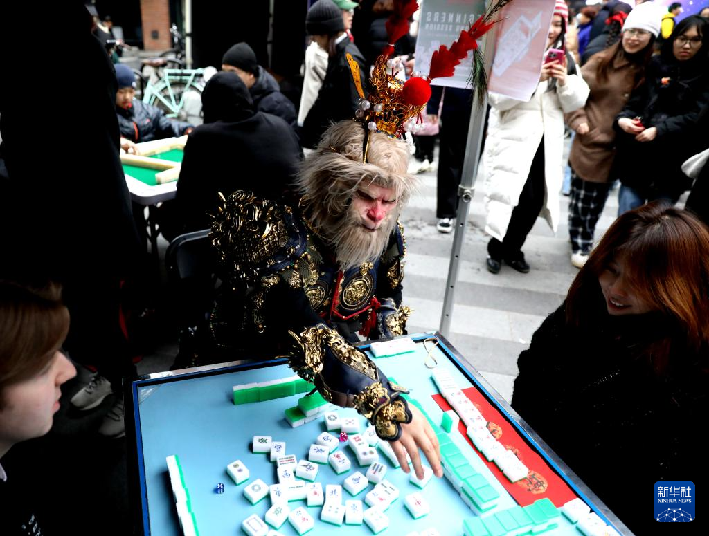 今年,倫敦卡姆登集市首次舉辦了中國春節(jié)慶典活動。喜慶的春節(jié)燈飾高高懸掛,在微風(fēng)中輕輕搖曳;空氣中彌漫著中式點(diǎn)心的香氣,令人垂涎欲滴。人群中,偶爾可見漢服衣袂翩然掠過,許多人手中還拿著紅色的燈籠和“?!弊?。在慶典活動上,當(dāng)?shù)厥忻裾淠荨っ谞栁值乱贿吅爸芭觥保贿呴_心地將麻將桌上的“南風(fēng)”牌收到面前。她不僅自己打得得心應(yīng)手,還不時給身邊的新手講解規(guī)則。