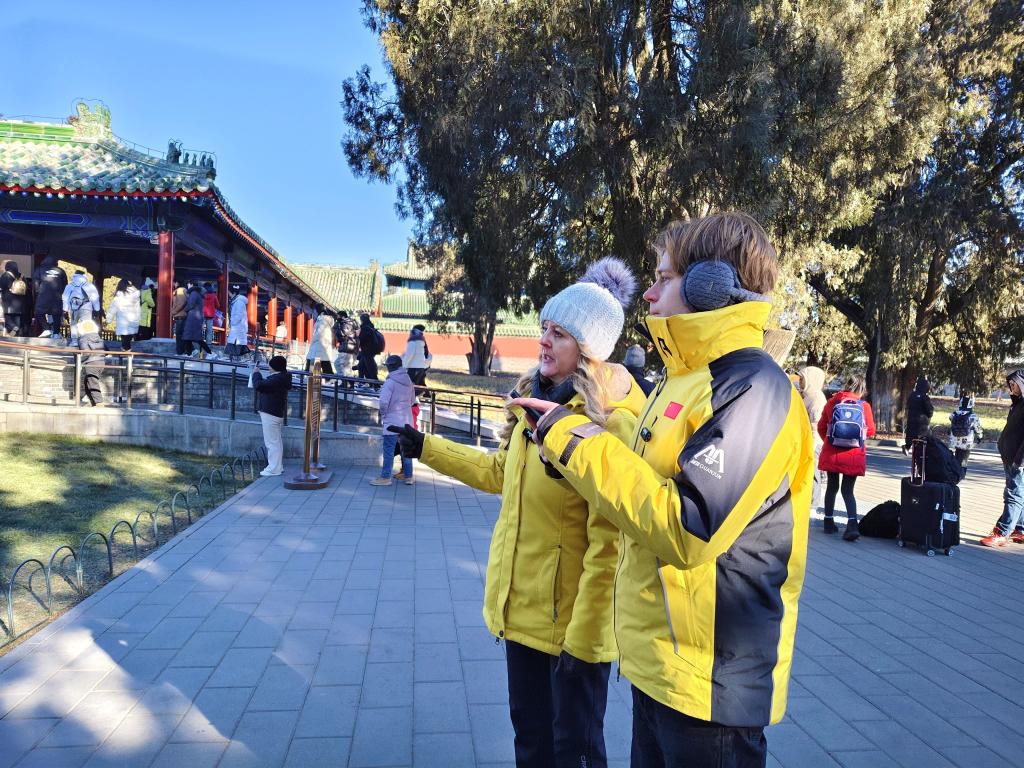 祈年殿、皇穹宇、圜丘……路過一個(gè)個(gè)景點(diǎn),記者為他們介紹起建筑背后的歷史和“天人合一”理念,母子二人聽得津津有味。當(dāng)天北京戶外溫度低至零下8攝氏度,手凍得生疼,但絲毫未影響埃米爾和媽媽拍照記錄的熱情。