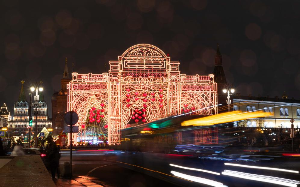 莫斯科春節(jié)慶?;顒?dòng)開幕恰逢除夕。在開幕式舉辦地——莫斯科市中心的馬涅什廣場,節(jié)慶彩色串燈搭配成百上千的紅燈籠裝點(diǎn)一新;臨時(shí)搭建的房屋四周懸掛的“?!弊趾椭袊Y(jié),將“年味兒值”拉滿;美食攤位升騰起裊裊炊煙,飄出的香氣令人垂涎欲滴。