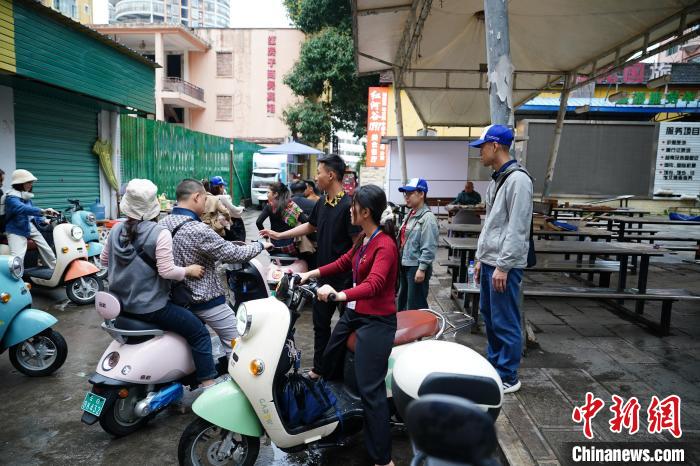 3月16日,云南省紅河州河口縣街頭,數(shù)位越南游客騎著租來的電動車游玩。中新社記者 劉冉陽 攝
