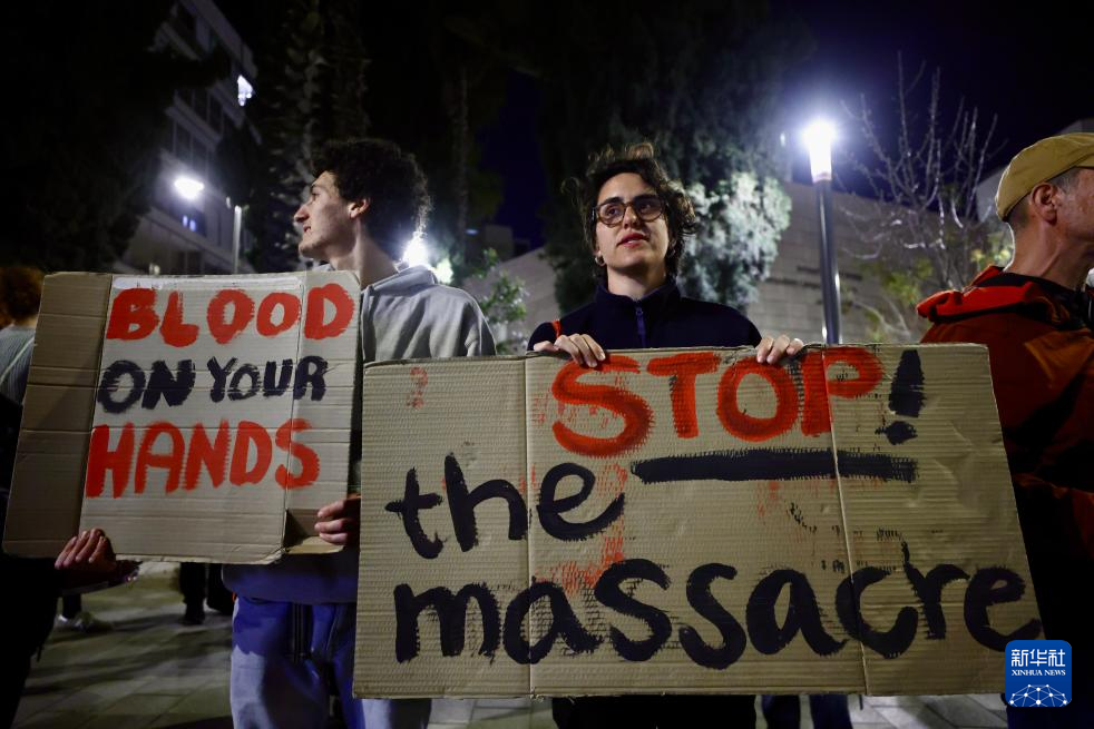3月12日,民眾在耶路撒冷舉行游行,呼吁以軍在加沙地帶實(shí)現(xiàn)長(zhǎng)期?;?,停止在約旦河西岸的襲擊和流血。新華社發(fā)(賈馬爾·阿瓦德攝)