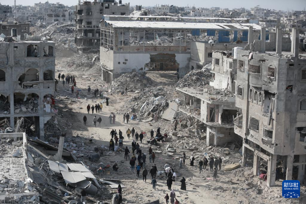 1月19日,巴勒斯坦人走在加沙地帶杰巴利耶難民營(yíng)。新華社發(fā)(阿卜杜勒拉赫曼·薩拉馬攝)