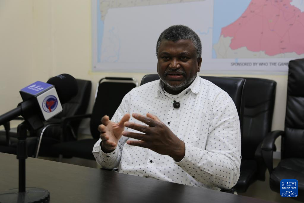 3月17日,岡比亞衛(wèi)生部長薩馬泰在岡比亞首都班珠爾接受新華社記者專訪。新華社記者 司源 攝