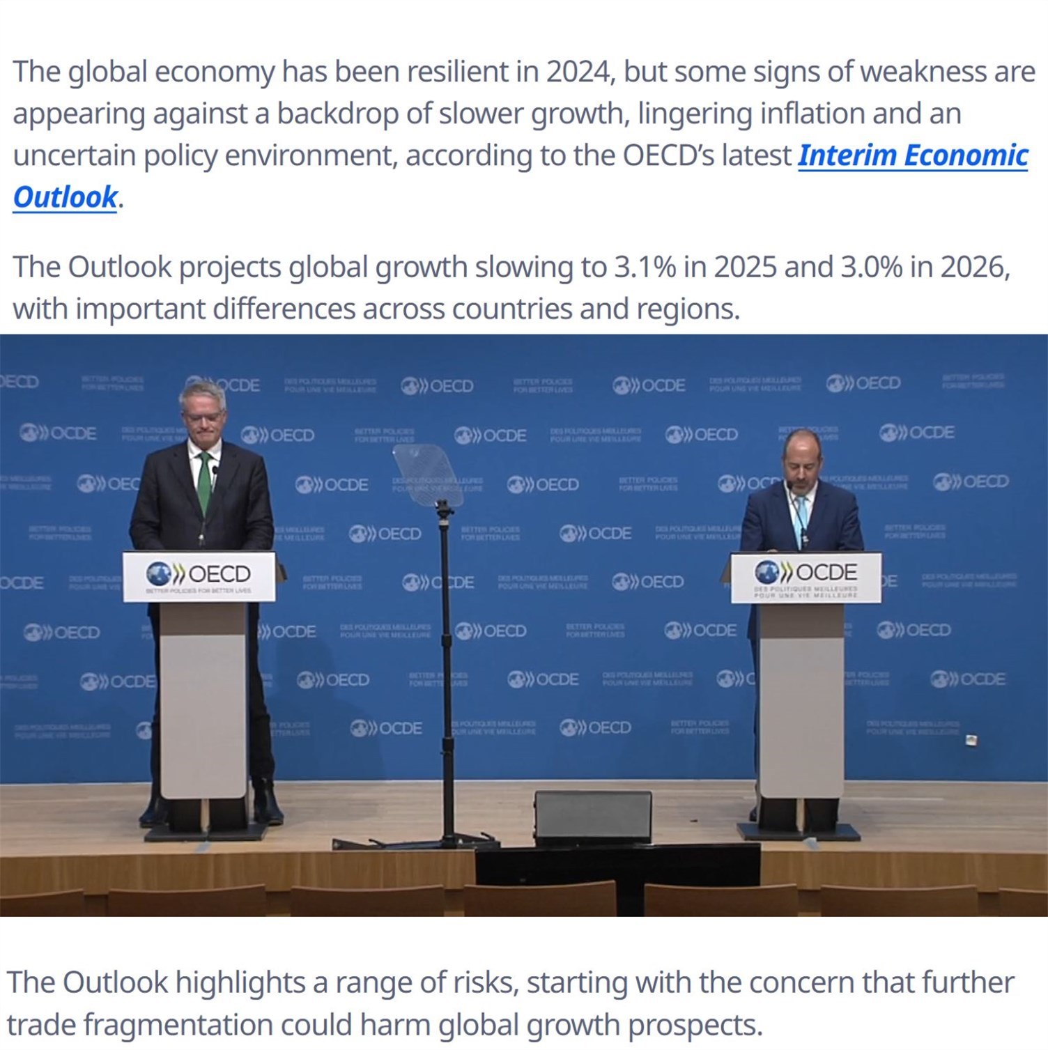 經(jīng)合組織的中期經(jīng)濟展望報告也印證了這一點。