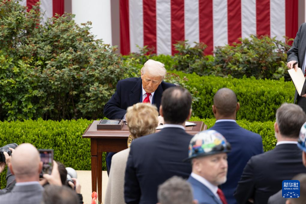 4月2日,美國總統(tǒng)特朗普在華盛頓白宮簽署關(guān)于所謂“對等關(guān)稅”的行政令。新華社記者 胡友松 攝