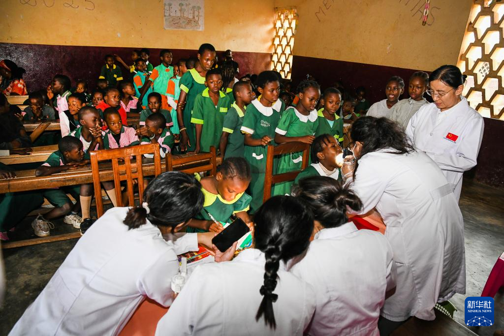 中國(guó)(山西)第24批援喀麥隆醫(yī)療隊(duì)姆巴爾馬約分隊(duì)3日在姆巴爾馬約市一所小學(xué)開展義診活動(dòng),為當(dāng)?shù)貙W(xué)生和教職員工提供口腔檢查、健康咨詢及疾病預(yù)防宣教服務(wù)。