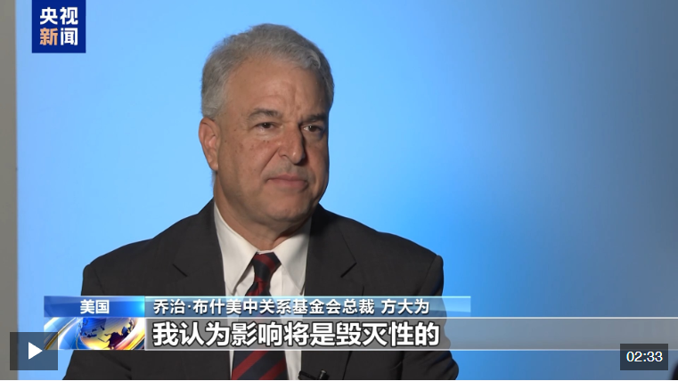 喬治·布什美中關(guān)系基金會總裁方大為6日在接受央視記者專訪時表示,美國政府新關(guān)稅政策的影響將是毀滅性的,不僅會使美國經(jīng)濟面臨更大的風(fēng)險,引發(fā)的經(jīng)濟衰退更是對全球貿(mào)易體系的破壞。